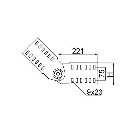З'єднувальні елементи кабельної траси, прокладеної під різними кутами. Повний діапазон регулювання кута з механізмом блокування.