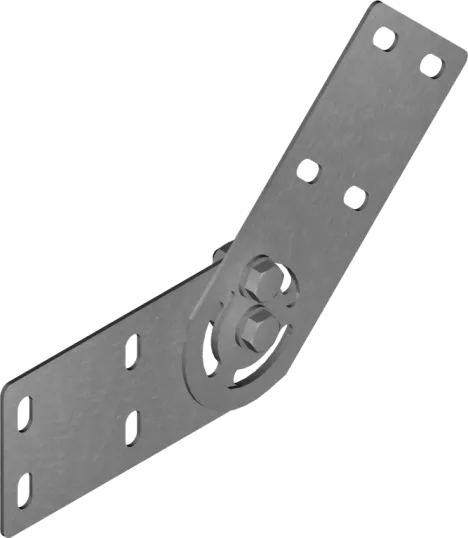 З'єднувальні елементи кабельних трас prowadzonej під різними кутами. Матеріал F - гарячеоцинкована сталь PN-EN ISO 1461:2023-02 Доступні варіанти оздоблення: E - нержавіюча сталь L - фарбування у стандартний колір RAL Додаткова інформація Повне регулювання кута! Для монтажу використовуйте 8 комплектів шурупів SGKFM8x14 або SGFM8x14