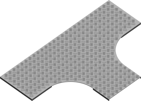Кришка, що використовується для лотків, встановлених на підлозі (нековзка поверхня). Захист кабелів від пошкоджень. Герметичний захист від накопичення пилу та бруду. Матеріал AL - алюміній A1 (EN AW-1050A).