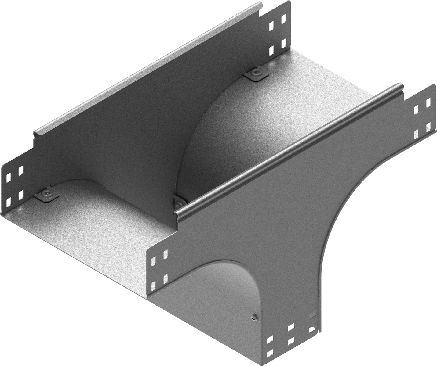 Розгалуження кабельної траси. Матеріал S - оцинкована за методом Сендзіміра сталь PN-EN 10346:2015-09 Доступні покриття: F - гаряче оцинкована сталь PN-EN ISO 1461:2023-02 E - нержавіюча сталь L - фарбування в стандартний колір RAL Додаткова інформація – кріплення за допомогою болтів SGKM6x12 або SGM6x12