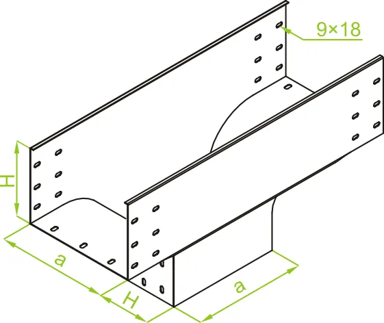 Розгалуження кабельної траси. Матеріал F - гарячеоцинкована сталь PN-EN ISO 1461:2023-02 Доступні варіанти оздоблення: E - нержавіюча сталь L - фарбування у стандартний колір RAL Додаткова інформація – для підключення фітинга до лотка використовуйте з'єднувач LCC... або комплект з'єднувачів LZC... та болти SGKFM8x14 або SGFM8x14
