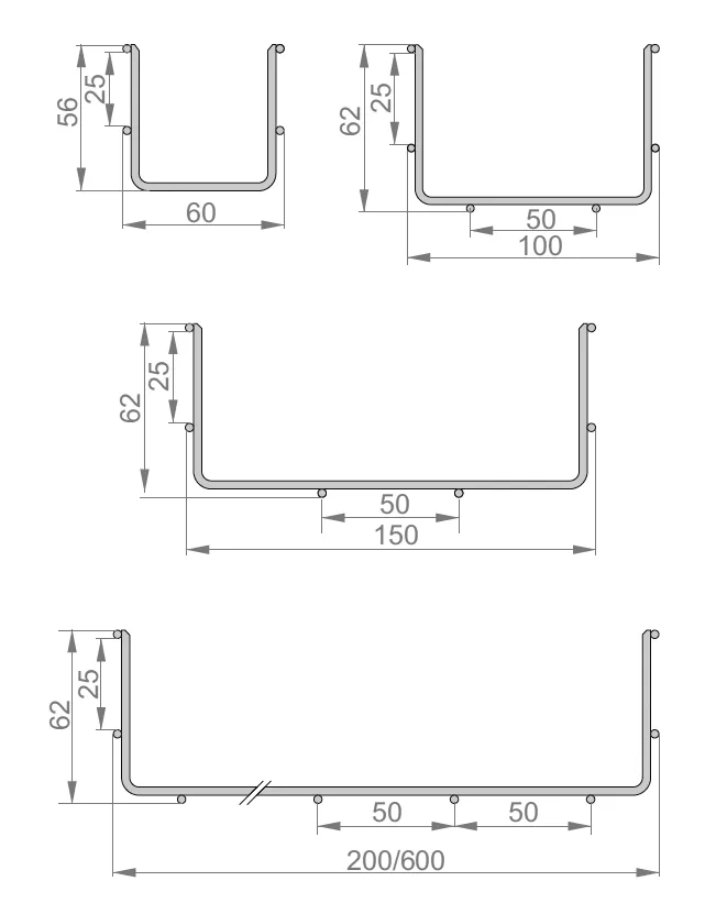 Маршрутизація кабелю. Матеріал G - оцинкований Доступні варіанти оздоблення: F - гарячеоцинкована сталь PN-EN ISO 1461:2023-02 E - нержавіюча сталь L - фарбування у стандартний колір RAL Додаткова інформація Всі кабельні лотки з дротяної сітки мають гладко обрізані кінці дроту запобігти пошкодженню кабелю