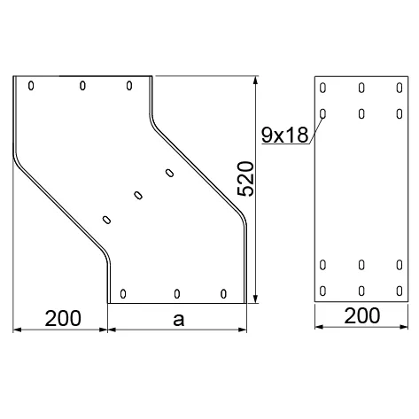 Обхід перешкоди вздовж траси кабелю. Матеріал F - гарячеоцинкована сталь PN-EN ISO 1461:2023-02 Доступні варіанти оздоблення: E - нержавіюча сталь L - фарбування у стандартний колір RAL Додаткова інформація – для підключення фітинга до лотка використовуйте з'єднувач LCC... або комплект з'єднувачів LZC... та болти SGKFM8x14 або SGFM8x14