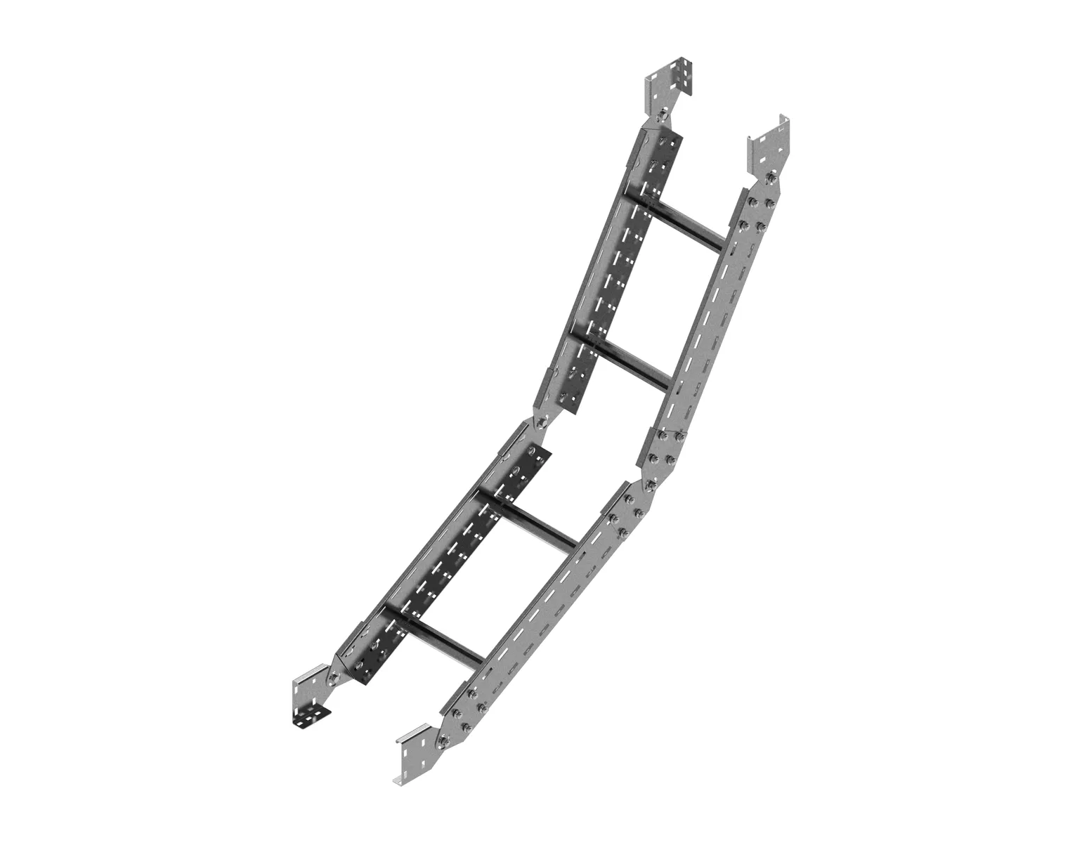 Зміна напрямку кабельної траси. Матеріал S - Сталь, оцинкована методом Сендзіміра PN-EN 10346:2015-09 Доступні варіанти оздоблення: F - гарячеоцинкована сталь PN-EN ISO 1461:2023-02 E - нержавіюча сталь L - фарбування у стандартний колір RAL Додаткова інформація – для кріплення використовуйте 16 комплектів болтів SGKM8x14 або SGM8x14
