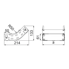 Зміна напрямку прокладки кабелю. Матеріал S - оцинкована за методом Сендзіміра сталь PN-EN 10346:2015-09 Доступні варіанти обробки: L - фарбування в стандартний колір RAL Додаткова інформація – безгвинтове кріплення