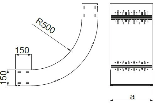 Зміна напрямку кабельної траси. Матеріал S - Сталь, оцинкована методом Сендзіміра PN-EN 10346:2015-09 Доступні варіанти оздоблення: F - гарячеоцинкована сталь PN-EN ISO 1461:2023-02 E - нержавіюча сталь L - фарбування у стандартний колір RAL Додаткова інформація – для з’єднання фітинга з лотком необхідно використовувати з’єднувачі фітингів LSSU... та болти SGKM8x16