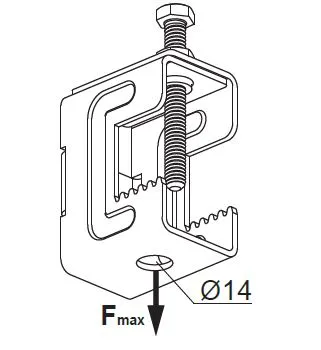 – Отвір Ø14 мм використовується для встановлення різьбового стрижня, гаків або хомутів OZC...