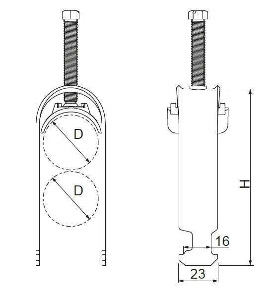 Тросове кріплення для драбин DG..., DF..., DU..., DS..., вертикальних драбин, поперечин SDOC та опорних профілів CM...41H... Матеріал FP - оцинкований методом цинкової стружки PN-EN ISO 10683:2018-11 Доступні варіанти оздоблення: E - нержавіюча сталь