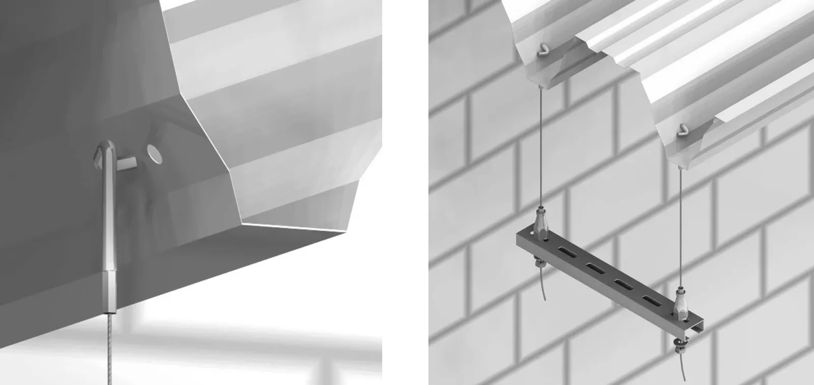 Підвішування освітлювальних приладів, кабелів, динаміків, датчиків сигналізації, вивісок, труб тощо до покрівельного покриття або трапецієподібних листів. Матеріал G - оцинкований