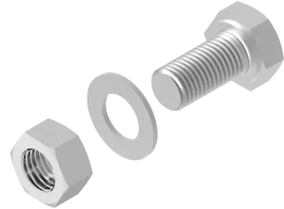 Підключення компонентів системи. Матеріал G - оцинкований Доступні варіанти оздоблення: F - гарячеоцинкована сталь PN-EN ISO 1461:2023-02 FP - оцинкований методом цинкової стружки PN-EN ISO 10683:2018-11 E - нержавіюча сталь Додаткова інформація – Болт класу міцності 5.8 – розмір згідно з DIN 933