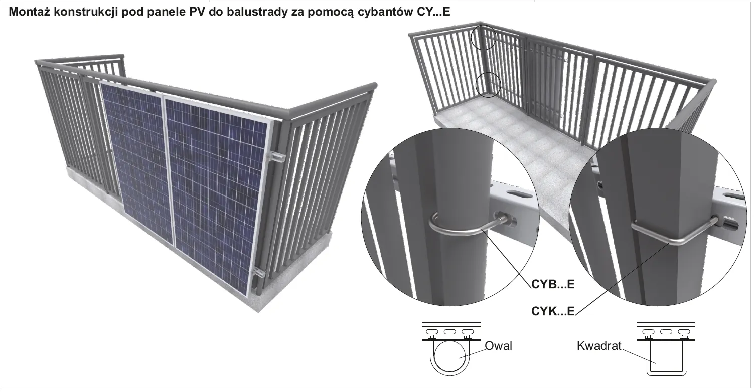 Кріплення системи до балконних перил за допомогою круглий переріз Матеріал E - нержавіюча сталь Додаткова інформація - вироби з нержавіючої сталі з дуже високим рівнем корозії опір - розміри U-подібних болтів підходять для більшості профілів, з яких виготовлений балкон виготовляються перила - швидкий монтаж систем до балконних перил