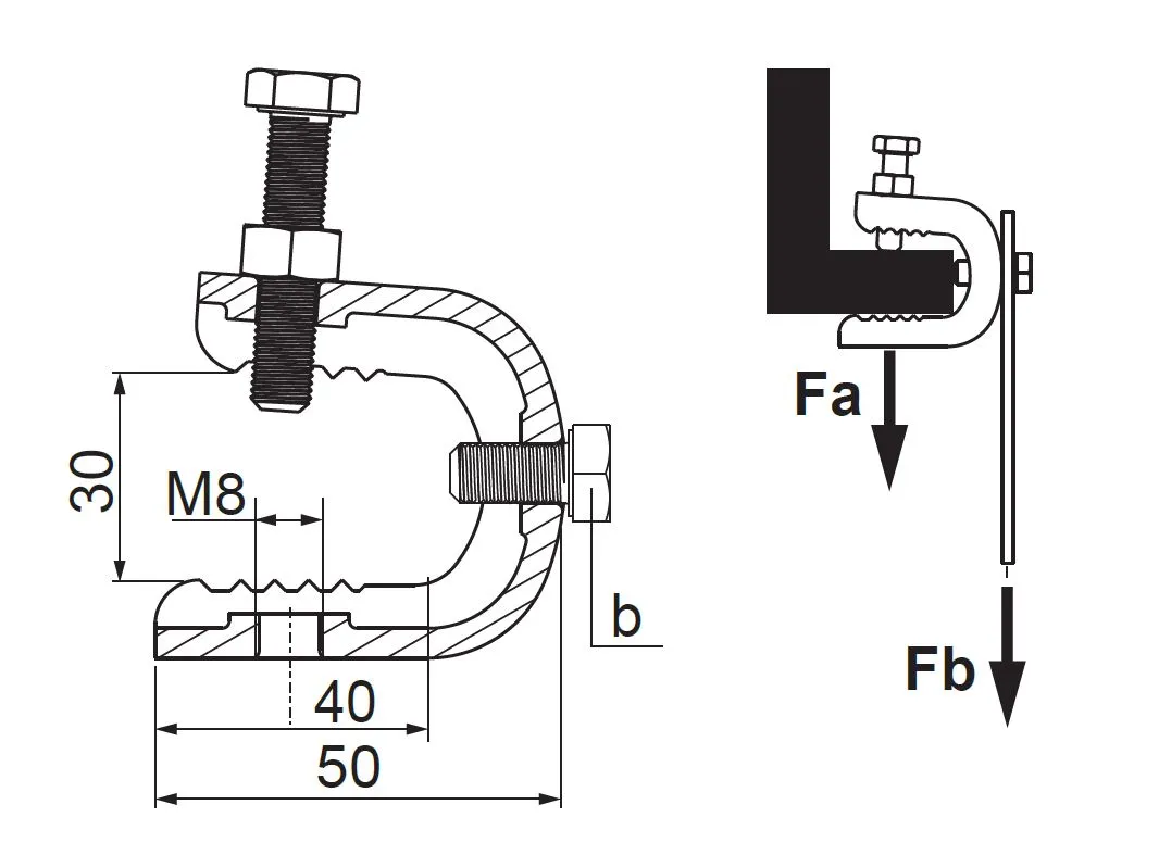 Кріплення стрижнів, хомутів тощо до: двотаврових балок, кутових профілів тощо