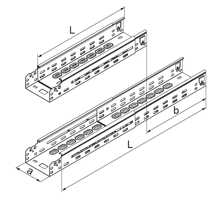 Безгвинтові з'єднання на двох кінцях кабельної траси. Можливість плавного регулювання викиду дозволяє регулювати довжину з'єднувача, позбавляючи від необхідності розрізати лоток
