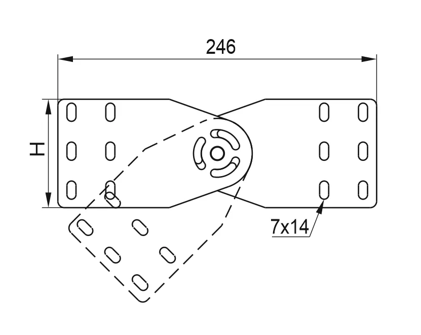 З'єднувальні кабельні траси. Матеріал S - оцинкована за методом Сендзіміра сталь PN-EN 10346:2015-09 Доступні варіанти обробки: FP - оцинкована методом цинкових пластівців PN-EN ISO 10683:2018-11 E - нержавіюча сталь L - фарбування в стандартний колір RAL Додаткова інформація Для монтажу використовуються 4 комплекти гвинтів SGKM6x12 або SGM6x12