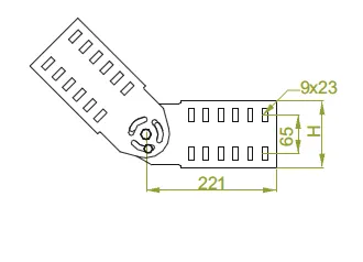З'єднувальні елементи кабельної траси, прокладеної під різними кутами. Повний діапазон регулювання кута з механізмом блокування.