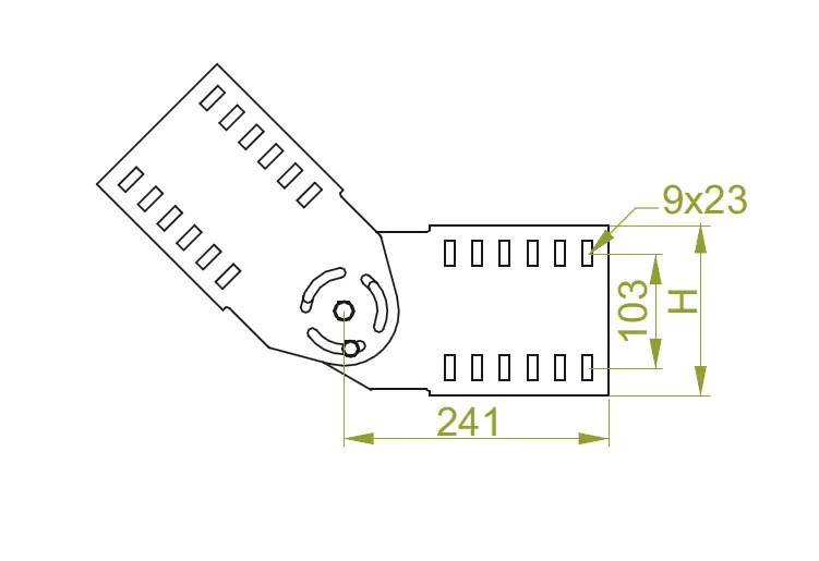 З'єднувальні елементи кабельної траси, прокладеної під різними кутами. Повний діапазон регулювання кута з механізмом блокування.