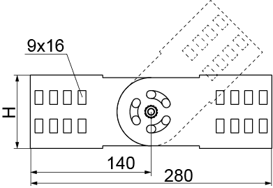 З'єднувальні кабельні драбини, прокладені під різними кутами. Повний діапазон регулювання кута з механізмом блокування. Матеріал S - Сталь, оцинкована методом Сендзіміра PN-EN 10346:2015-09 Доступні варіанти оздоблення: F - гарячеоцинкована сталь PN-EN ISO 1461:2023-02 E - нержавіюча сталь L - фарбування у стандартний колір RAL Додаткова інформація – для кріплення використовуйте 8 комплектів болтів SGKM8x14 або SGM8x14