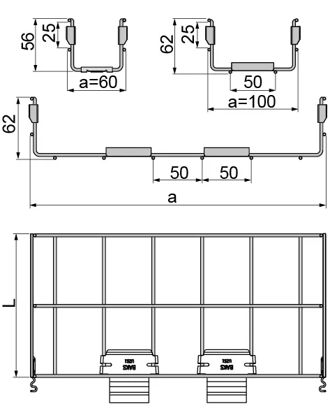 Безгвинтове подовження кабельної траси. Матеріал G - оцинкований Доступні варіанти оздоблення: F - гарячеоцинкована сталь PN-EN ISO 1461:2023-02 L - фарбування у стандартний колір RAL