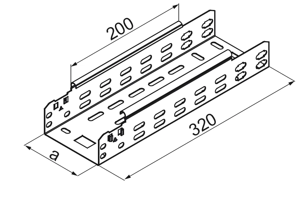 Подовження кабельної траси з лотків KF...Можливість з'єднання лотків KF...зі стандартними лотками. Матеріал S - оцинкована методом Сендзимира сталь PN-EN 10346:2015-09 Доступні варіанти обробки: L - фарбування в стандартний колір RAL
