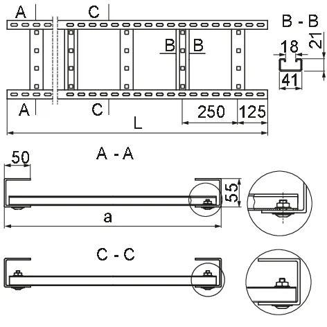 – спеціальні болти (зі сплющеною головкою) для кріплення сходів дозволяють безпосередньо монтувати драбину до стіни