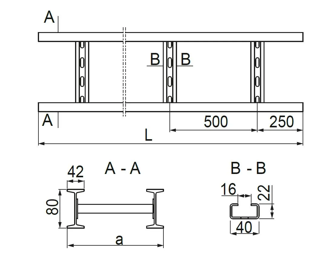 Прокладання вертикальної та, за бажанням, горизонтальної кабельної траси. Матеріал S - Сталь, оцинкована методом Сендзіміра PN-EN 10346:2015-09 Доступні варіанти оздоблення: F - гарячеоцинкована сталь PN-EN ISO 1461:2023-02 E - нержавіюча сталь L - фарбування у стандартний колір RAL Додаткова інформація – можливість монтажу кабелів у затискачах UK/UKO... та UKP...