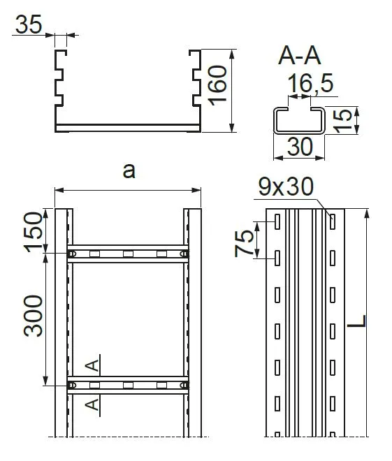 – драбина зі сходами, що підходить для монтажу кабельних затискачів UK/UKO... та UKP...