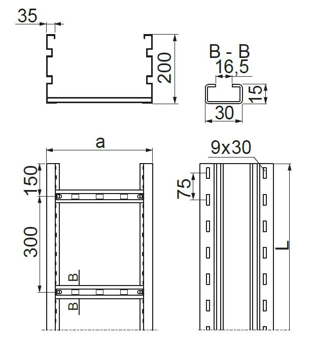 – драбина зі сходами, що підходить для монтажу кабельних затискачів UK/UKO... та UKP...