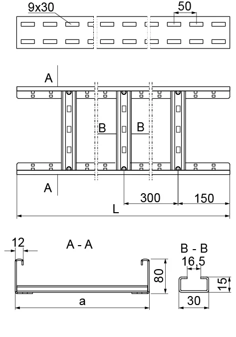 – драбина зі сходами, що підходить для монтажу кабельних затискачів UK/UKO... та UKP...