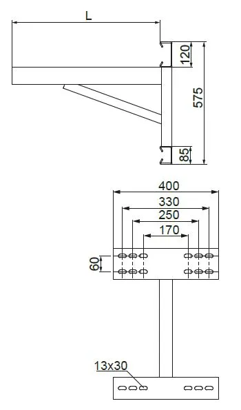 Монтаж лотків, кабельних драбин, труб та інших елементів з важкими навантаженнями. Разом з профілем CE60H40/... або CMT41H41/..., який подовжує настінний кронштейн, можна змістити кабельний маршрут відносно стіни.