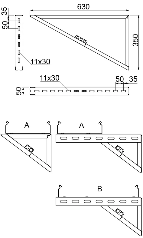 – настінний кронштейн призначений для зазначеної ширини кабельної траси (A)