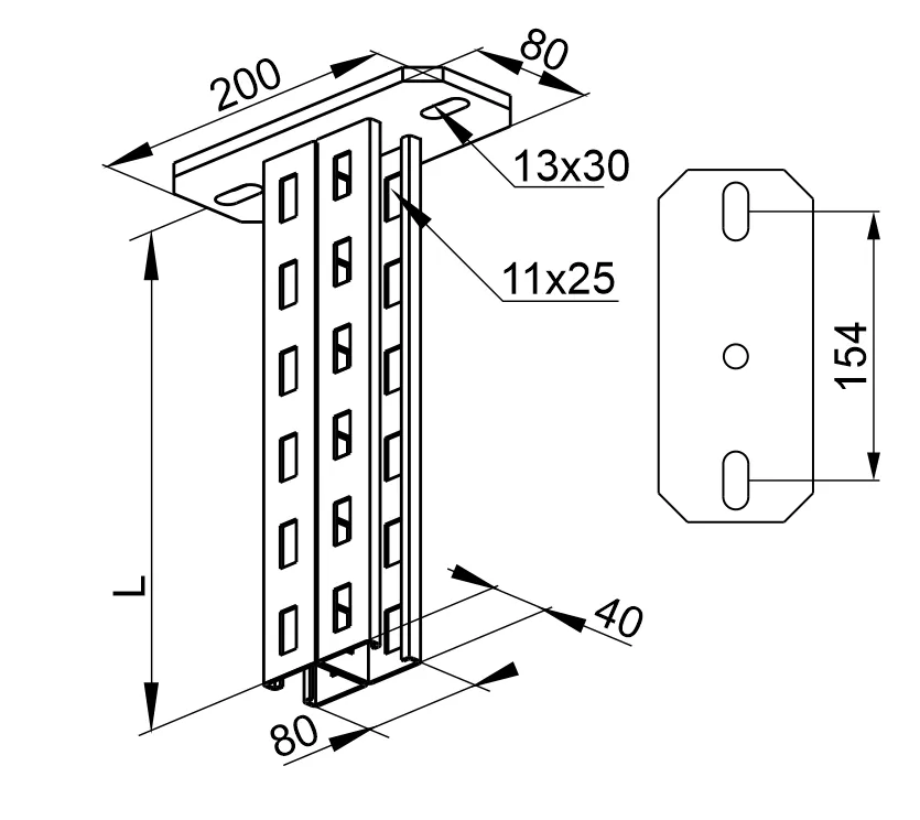 – для кріплення настінних кронштейнів до відкритої сторони опорного кронштейна рекомендується використовувати пластини швелера PZC40 або PZC100