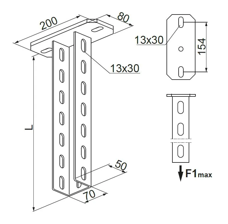 – діаграма нижче розрахована на одностороннє навантаження на кронштейн, для двостороннього навантаження кронштейна значення слід подвоїти (навантаження має бути рівномірним)