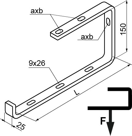 Підвішування кабельних трас. Матеріал F - гарячеоцинкована сталь PN-EN ISO 1461:2023-02 Доступні варіанти оздоблення: E - нержавіюча сталь L - фарбування у стандартний колір RAL