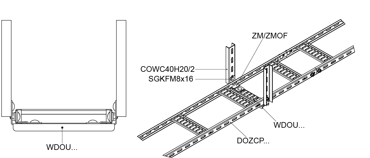 Монтаж кабельних трас. Матеріал F - гарячеоцинкована сталь PN-EN ISO 1461:2023-02 Доступні варіанти оздоблення: E - нержавіюча сталь