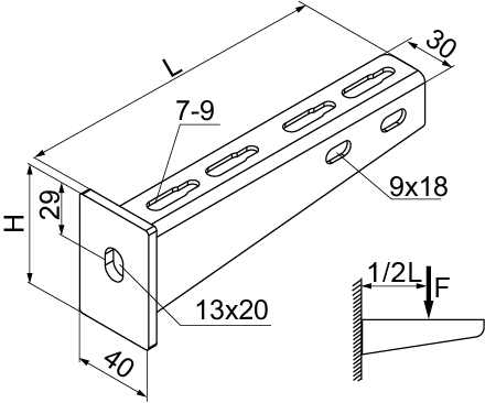 Монтаж лотків, кабельних драбин, труб та інших елементів з великими навантаженнями. Матеріал F - гарячеоцинкована сталь PN-EN ISO 1461:2023-02 Доступні варіанти оздоблення: E - нержавіюча сталь L - фарбування у стандартний колір RAL