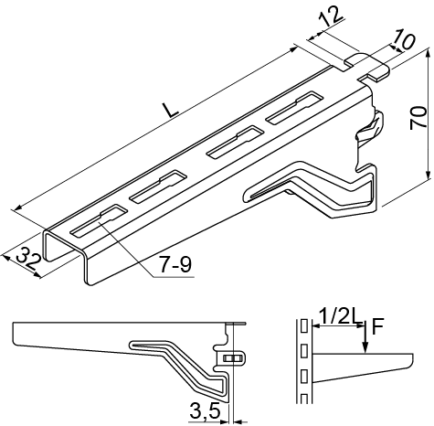 – безгвинтове кріплення до кронштейнів BAKS та профілів C..., CW... та CM... з отворами шириною 11-13 та довжиною 30-35 мм