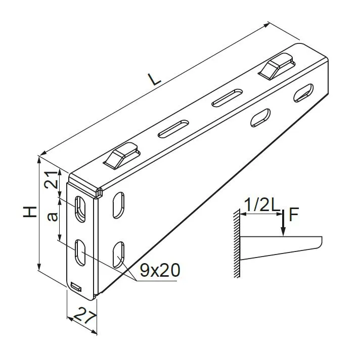Кронштейн WWSS500 (900750) Виробник: BAKS Артикул: WWSS500 Ціна за дзвінком Кількість: Замовити Індивідуальний список бажань ОК Додати до списку бажань Додати до списку порівняння Повідомити друга Підвішування кабельних лотків з дротяної сітки Матеріал S - Сталь, оцинкована методом Сендзіміра PN-EN 10346:2015-09 Доступні варіанти оздоблення: F - гарячеоцинкована сталь PN-EN ISO 1461:2023-02 E - нержавіюча сталь L - фарбування у стандартний колір RAL Додаткова інформація – як варіант, можна використовувати посилений настінний кронштейн WWS/WWSO з гвинтовими затискачами ZS/ZSO Характеристики товару Назва атрибуту Значення атрибуту Системи кабельних трас Типи елементів кронштейн Товщина листа 0.0 мм Властивості матеріалу S - оцинкована сталь за методом Сендзіміра, F - гарячеоцинкована сталь, E - нержавіюча сталь, L - фарбування в стандартний колір RAL Вага 1шт [кг] 1.22 Кількість [шт] 20 Товщина листа [мм] 2.50 Довжина L [мм] 515 mm Висота H [мм] 115 Розмір a [мм] 45 F макс. [кН] 1.60