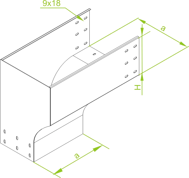 Зміна напрямку прокладання кабелю з горизонтальної струни на вертикальну. Матеріал F - гарячеоцинкована сталь PN-EN ISO 1461:2023-02 Доступні варіанти оздоблення: E - нержавіюча сталь L - фарбування у стандартний колір RAL Додаткова інформація – для підключення фітинга до лотка використовуйте з'єднувач LCC... або комплект з'єднувачів LZC... та болти SGKFM8x14 або SGFM8x14