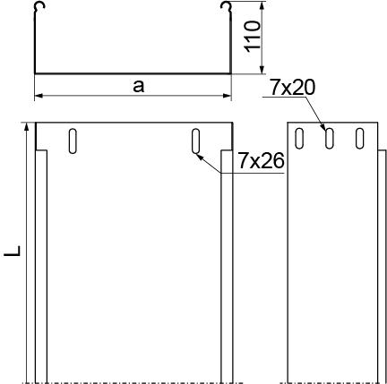 | Властивості матеріалу | S - оцинкована сталь за методом Сендзіміра, F - гарячеоцинкована сталь, E - нержавіюча сталь, L - фарбування в стандартний колір RAL |