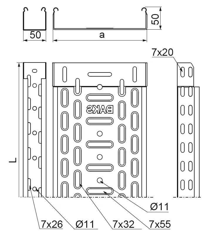 | Властивості матеріалу | S - оцинкована сталь за методом Сендзіміра, F - гарячеоцинкована сталь, L - фарбування в стандартний колір RAL |