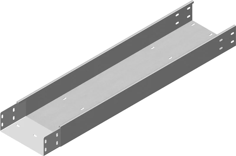 Маршрутизація кабелю. Матеріал F - гарячеоцинкована сталь PN-EN ISO 1461:2023-02 Доступні варіанти оздоблення: E - нержавіюча сталь L - фарбування у стандартний колір RAL Додаткова інформація Перевага: Додаткові верхні вигини збільшують вантажопідйомність та захищають кабелі від пошкоджень під час прокладання. Для монтажу використовуйте 10 комплектів шурупів SGKFM8x14 або SGFM8x14. Примітка Інтегровані з'єднувачі. Збірка без додаткових з'єднувачів.