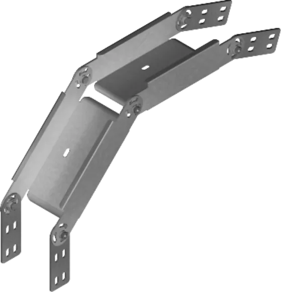Зміна напрямку траси кабелю. Повне регулювання кута з механізмом блокування. Матеріал F - гарячеоцинкована сталь PN-EN ISO 1461:2023-02 Доступні варіанти оздоблення: E - нержавіюча сталь L - фарбування у стандартний колір RAL Додаткова інформація – для кріплення пропонуємо болти SGKFM6x12 або SGFM6x12