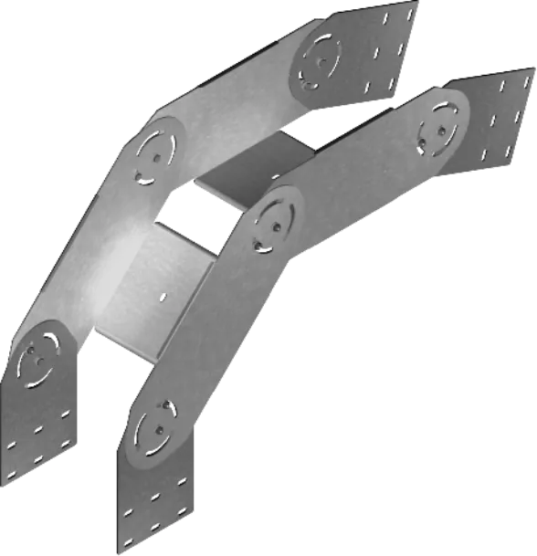 Зміна напрямку траси кабелю. Повне регулювання кута з механізмом блокування. Матеріал F - гарячеоцинкована сталь PN-EN ISO 1461:2023-02 Доступні варіанти оздоблення: E - нержавіюча сталь L - фарбування у стандартний колір RAL Додаткова інформація – для кріплення пропонуємо болти SGKFM8x14 або SGFM8x14
