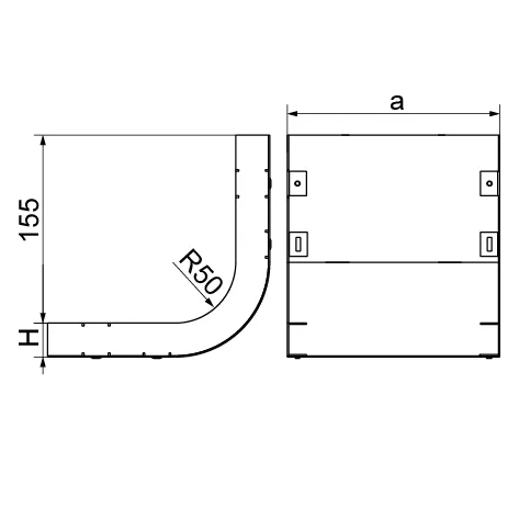 Зміна напрямку кабельної траси. Матеріал S - Сталь, оцинкована методом Сендзіміра PN-EN 10346:2015-09 Доступні варіанти оздоблення: E - нержавіюча сталь Додаткова інформація – чохол в комплекті