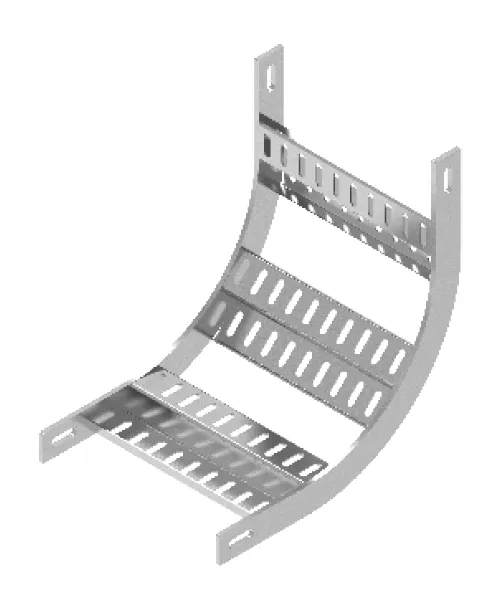 Зміна напрямку кабельної траси. Матеріал F - гарячеоцинкована сталь PN-EN ISO 1461:2023-02 Доступні варіанти оздоблення: E - нержавіюча сталь Додаткова інформація – використовуйте з'єднувачі LDOUH40 та болти SGKFM8x16 для кріплення