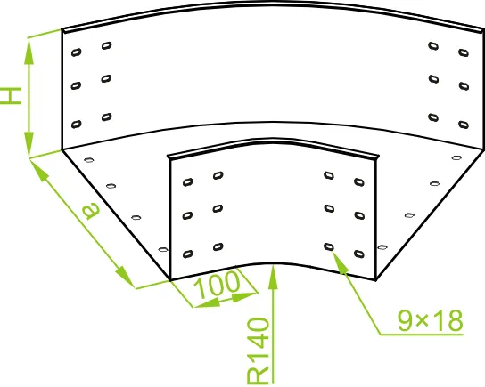 Поворот 45° горизонтальний KKZMC200H200 (370920)