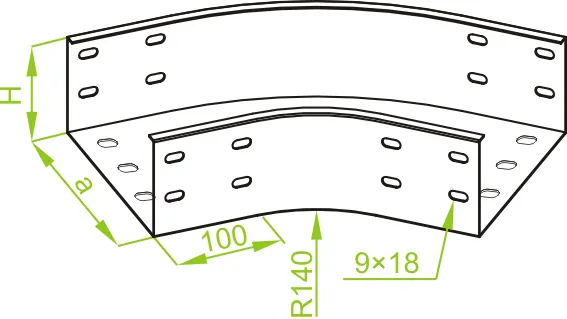 Відхилення під час прокладання кабелю. Матеріал F - гарячеоцинкована сталь PN-EN ISO 1461:2023-02 Доступні варіанти оздоблення: E - нержавіюча сталь L - фарбування у стандартний колір RAL Додаткова інформація Для з'єднання фітингів з кабельними лотками використовуйте прямі з'єднувачі LZC... та комплекти гвинтів SGKFM8x14 або SGFM8x14
