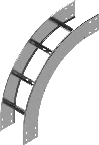 Зміна напрямку кабельної траси. Матеріал S - Сталь, оцинкована методом Сендзіміра PN-EN 10346:2015-09 Доступні варіанти оздоблення: F - гарячеоцинкована сталь PN-EN ISO 1461:2023-02 E - нержавіюча сталь L - фарбування у стандартний колір RAL Додаткова інформація – використовуйте 4 з’єднувачі LDPH... або LDCH... та 32 комплекти болтів SGKM8x14 або SGM8x14 для кріплення