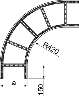 Зміна напрямку кабельної траси. Матеріал MC - сталь з покриттям Mangelis® Додаткова інформація – використовувати 4 LDPH60MC та 16 комплектів SGKFM8x14 – Систему покриття Magnelis можна доповнити гарячим цинкуванням або виробами з нержавіючої сталі