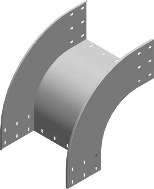 Зміна напрямку кабельної траси. Матеріал F - гарячеоцинкована сталь PN-EN ISO 1461:2023-02 Доступні варіанти оздоблення: E - нержавіюча сталь L - фарбування у стандартний колір RAL Додаткова інформація – для підключення фітинга до лотка використовуйте з'єднувач LCC... або комплект з'єднувачів LZC... та болти SGKFM8x14 або SGFM8x14